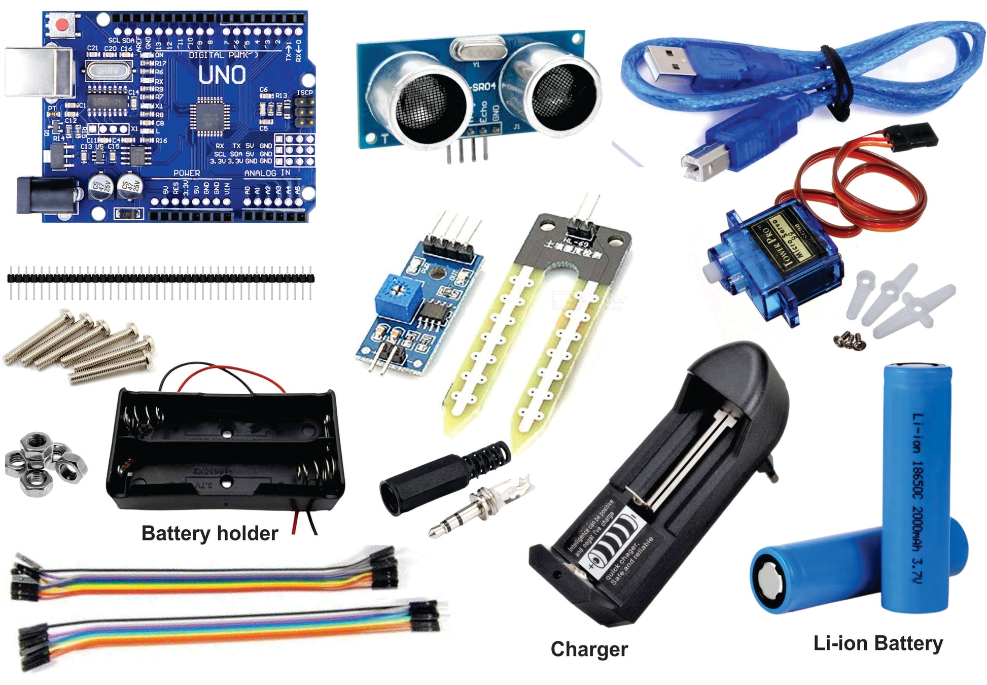 - ये प्रोजेक्ट components किट हैं । इसके सारे पार्ट्स tested होते हैं | Arduino में कोड लोड होके आयेगा। No need to upload again.